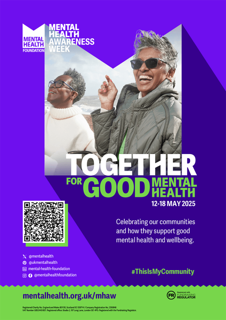 The whole topic of mental health is complex. The Mental Health Foundation highlights that mental health and wellbeing are determined by a combination of biological, psychological and social factors; so, there are many elements to consider when exploring an individual’s mental health; invariably, the best way to provide support is to offer guidance and expert help. The Mental Health Foundation has many resources created by experts that can help people to understand the issues and identify what to look for that might reveal when you, or someone close to you, might be struggling. So, we encourage everyone to promote Mental Health Awareness Week from 12th to 18th May 2025.